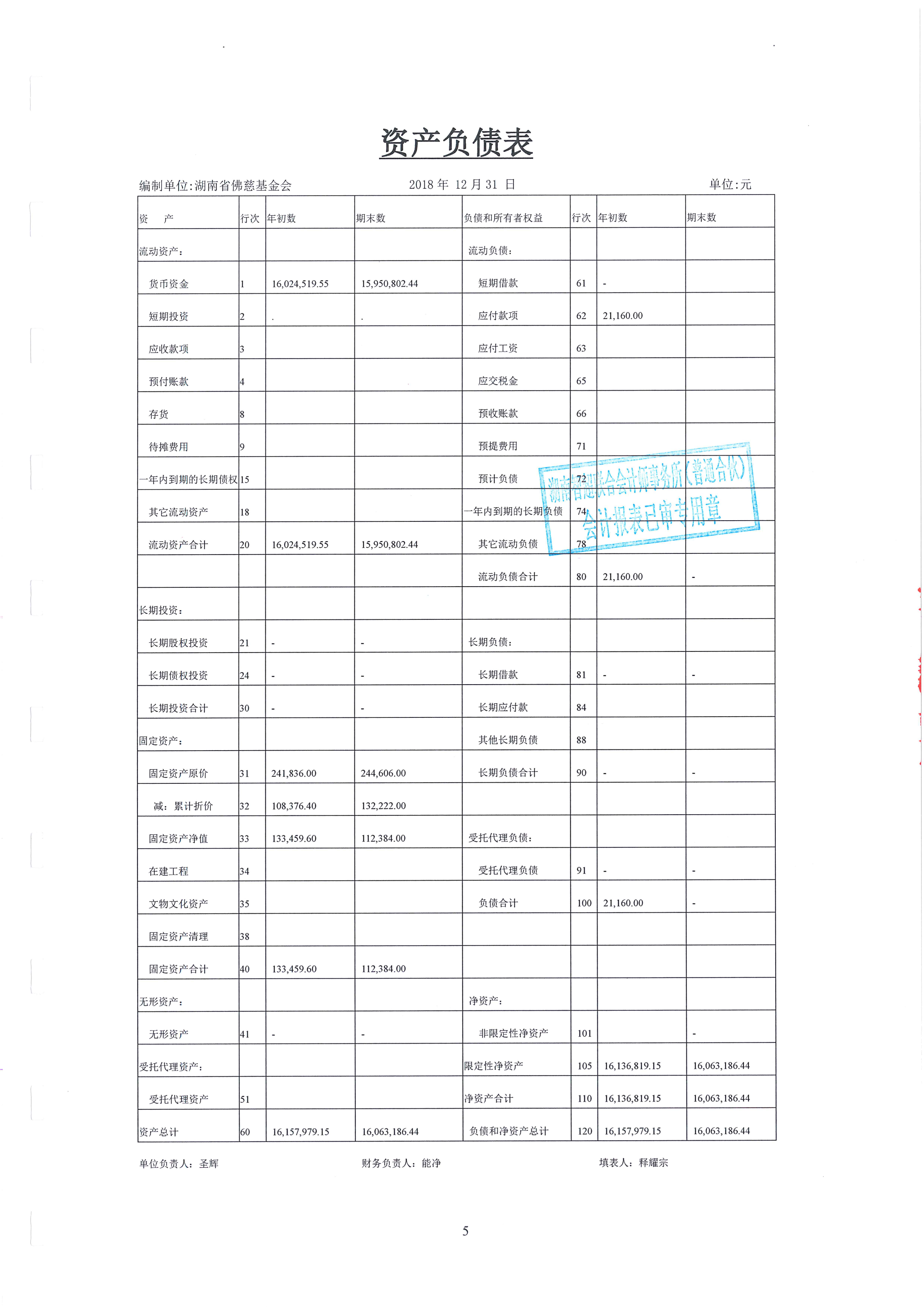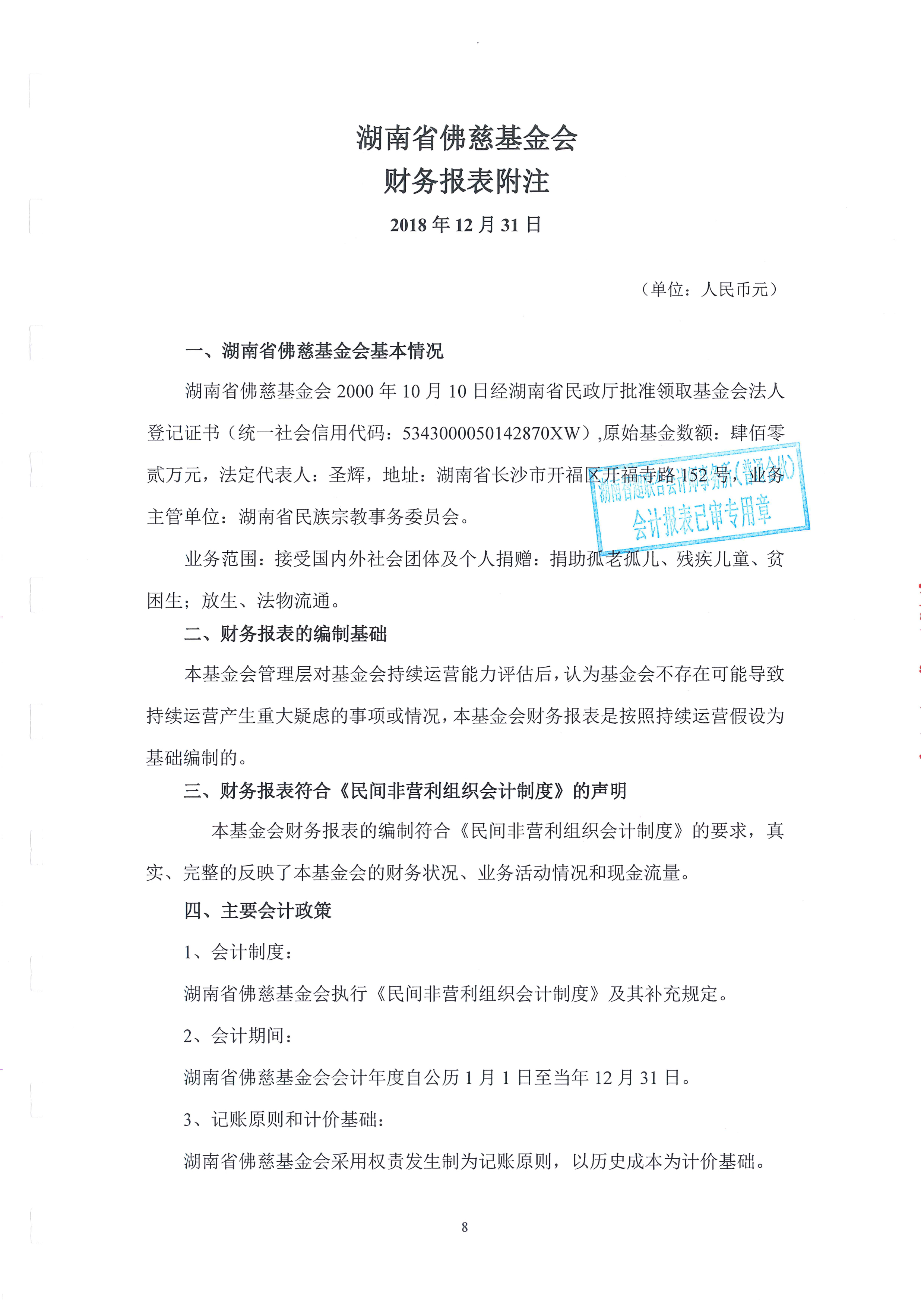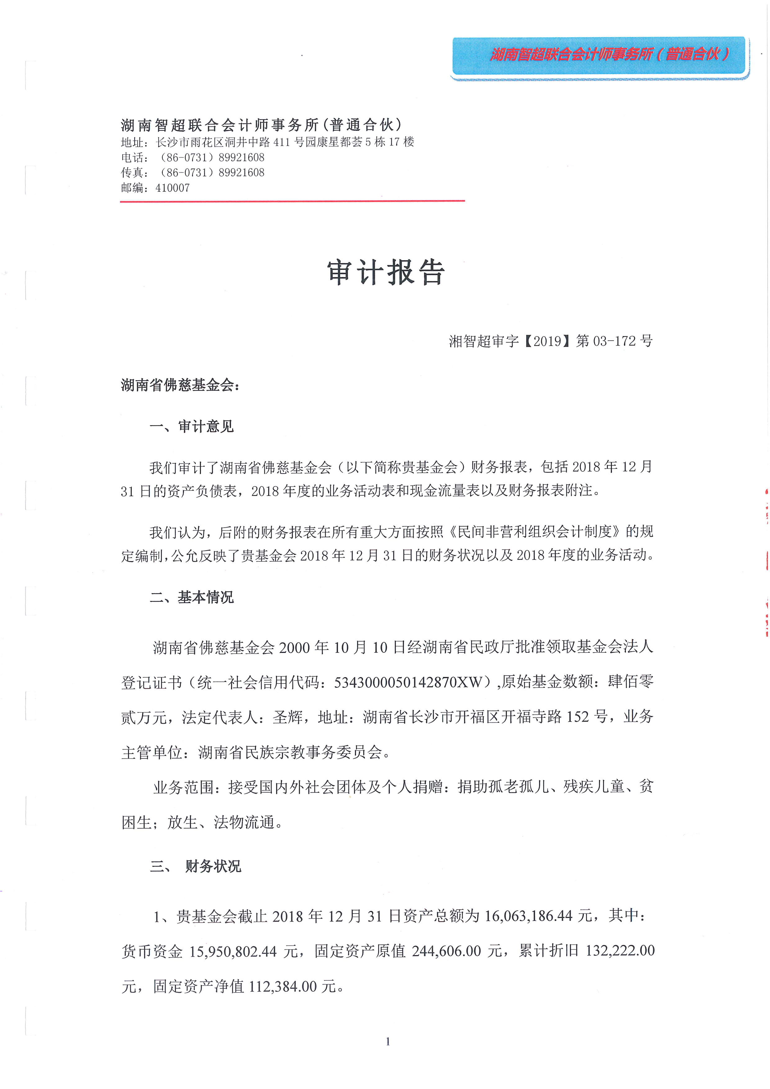 湖南省佛慈基金会2018年审计报告