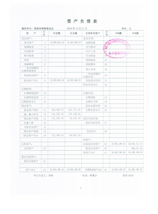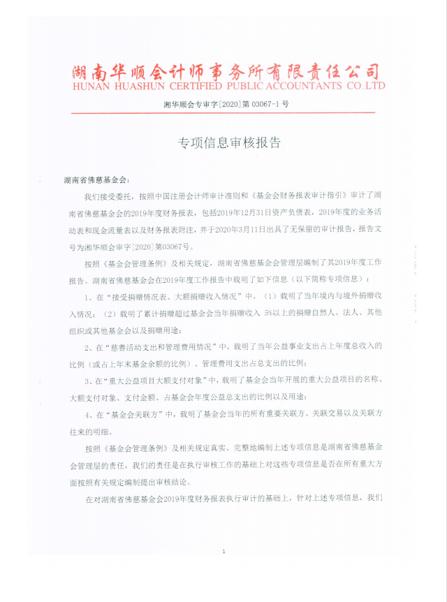 湖南省佛慈基金会2019年审计报告