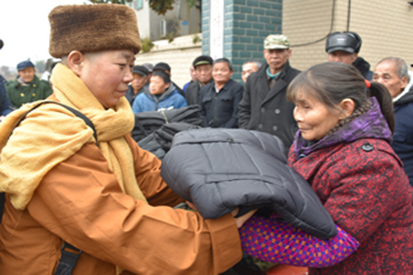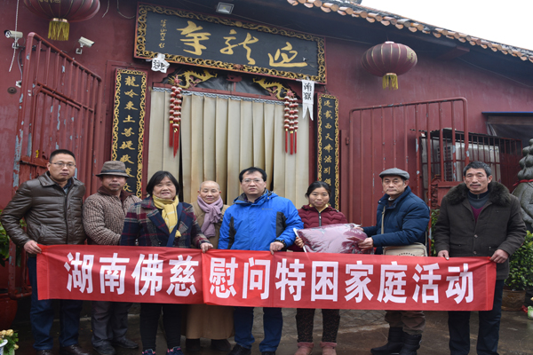 本次慈善活动首先慰问了一位家住湘潭县姜畲镇联映村,名叫黄大娥的特困家庭。其丈夫重病,家庭陷入了极度困境。得知她家具体情况后,湖南省佛慈基金会给于了1000元现金资助和一件新棉衣,并鼓励她一定要积极面对生活,在党和政府以及社会各界的关注下,眼前的困难一定会过去。