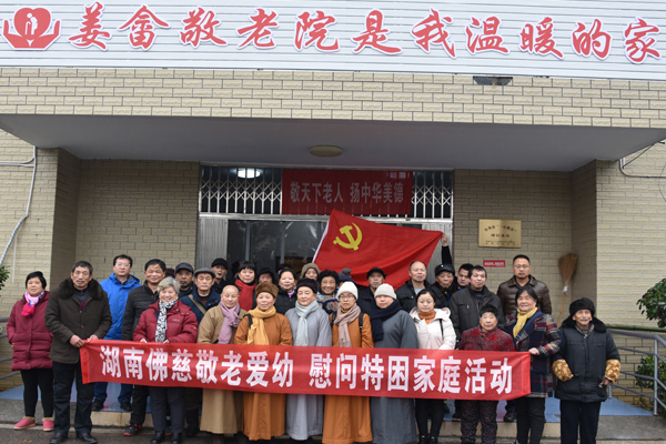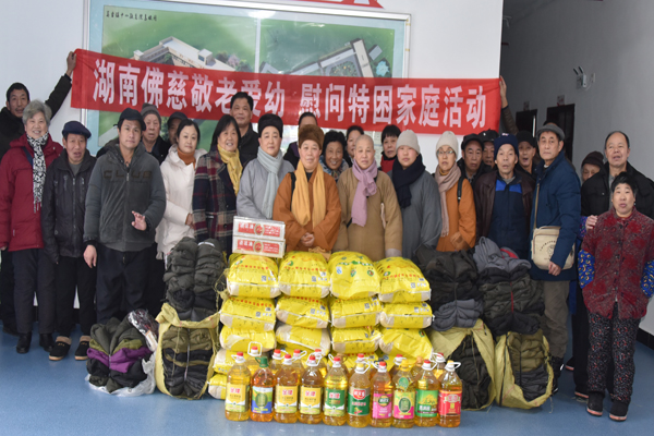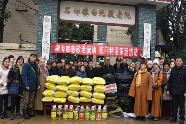 2019年1月10日上午,受湖南省佛慈基金会会长圣辉大和尚的嘱托,湖南省佛慈基金会携手湘潭市佛教协会,前往湘潭市开展慈善捐赠以及年终慰问孤寡老人活动。参与活动的有湘潭市迎龙寺妙提法师、湘潭市佛教协会秘书长昌雪法师、云居寺心慈法师等人,随同前往的还有湖南省佛慈基金会秘书长周仲山、副秘书长罗秋平、常务副秘书长陈旭。