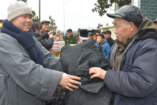随后,一行人分别走访慰问了入住湘潭市姜畲镇、石塘镇中心、石塘镇白托三个敬老院的162位孤寡老人。为每一位老人奉送了新棉衣、大米、食用油、清凉油等爱心物资,累计捐赠爱心物资价值32340元。老人们把大家逐一奉送的物资捧在手上时,个个都开心的像个孩子,有一位老人当场把崭新的棉衣穿在身上后,开心的说“这件衣服就是我的了。”惹得在场的人都哈哈大笑起来。