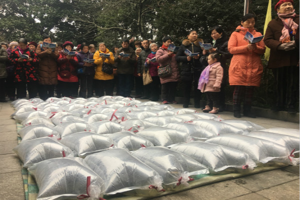 2019年1月26日上午,近300多位常年支持湖南省佛慈基金会慈善事业的居士信众一大早就聚集在,被浓郁的腊梅花香弥漫包裹着,坐落于开福寺路的基金会院子里,举行了每月一度的放生活动。
