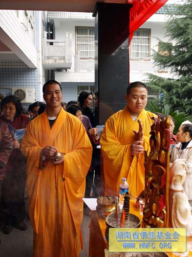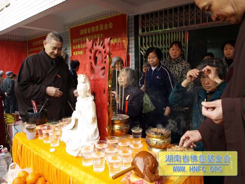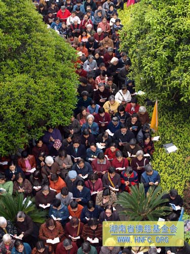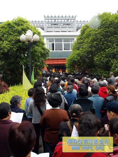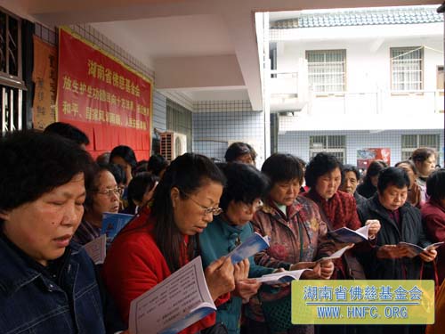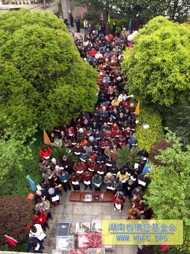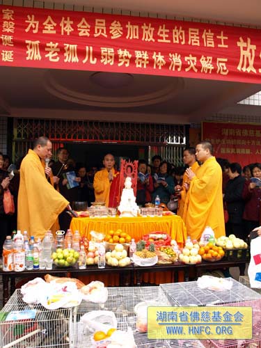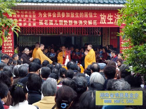 3月25日(农历2月28日),春暖花开,法喜充满。在湖南省佛慈基金会办公大楼前举行了隆重的放生法会。