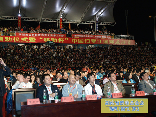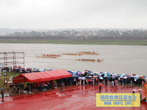 当晚,圣辉大和尚一行在汩罗市委市政府的盛情邀请下,参加了在“端午源头,龙舟故里”——汩罗江举行的“2009全国龙舟启动仪式暨‘移动杯’中国汩罗江国际龙舟节”开幕式,并于次日端午节观看了龙舟比赛,深刻缅怀伟大的诗人与爱国者屈原,学习、弘扬他伟大的爱国精神与高尚的民族情怀。