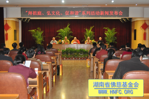2009年11月12日上午,由湖南省佛教协会主办的“拜祖庭、弘文化、促和谐”系列活动新闻发布会在湖南省委统战部会议室隆重召开。