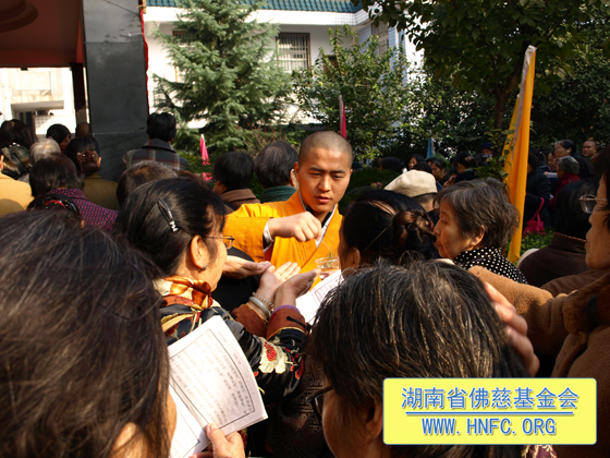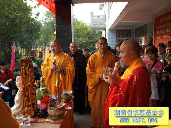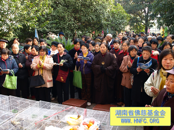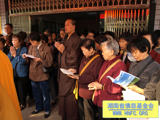 我们佛慈基金会每年在中国佛教协会副会长﹑湖南省佛教协会会长﹑湖南省佛慈基金会会长圣辉大和尚的领导下坚持不懈地放生护生,把善款亲自送到孤儿孤老的手中,还送大量的米、食用油改善他们的生活,年终还请他们吃团圆饭,给他们添置必需的生活用品。做的这些善举,都离不开会长圣辉大和尚慈悲的关怀以及居信士们慷慨解囊的贡献。真心地祈愿地球上所有的众生都能和谐相处!愿我们共同的家园充满和平与幸福!希望更多慈悲的善心人加入到放生护生的行列中来。让世界充满爱!
