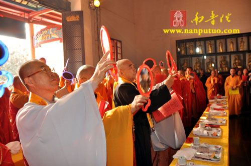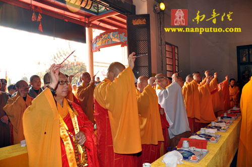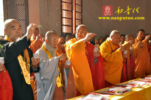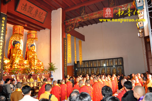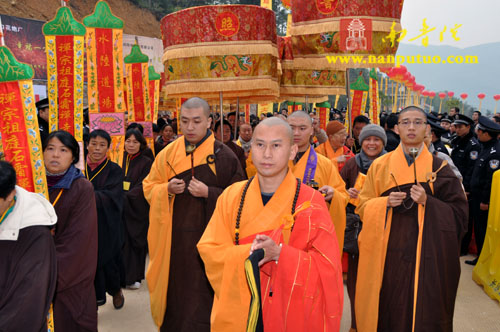 中午11时许,石霜寺全堂佛像开光仪式恭请圣辉大和尚、泓坡长老、慧耕长老、春光长老、净良长老、绍根长老、慧雄法师等诸山长老主法,与会领导和嘉宾进殿观礼。另外,为祈求世界和平、人民安乐,石霜寺于傍晚6时30分举行传灯祈福法会。
