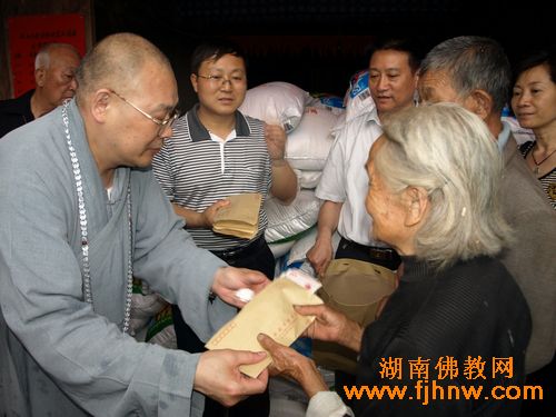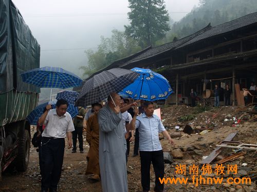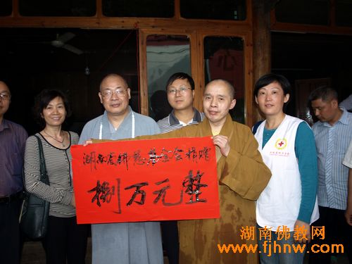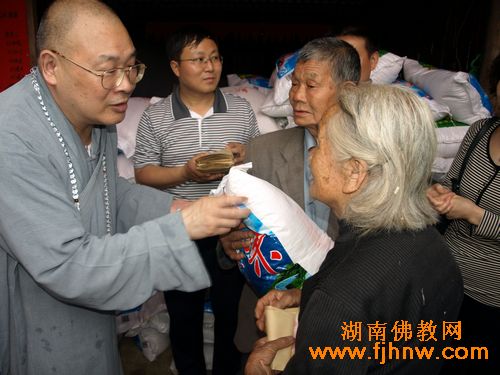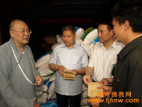 湖南佛教网讯:2010年5月26日,全国人大代表、中国佛教协会副会长、湖南省佛教协会会长、湖南佛慈基金会会长圣辉大和尚一行前往怀化溆浦县捐助“5.13”洪灾受灾村民。