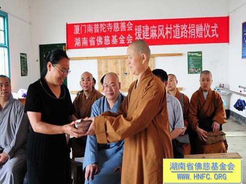 湖南省佛慈基金会和厦门南普陀慈善会,当天就举行了一个简单的捐赠仪式,南普陀慈善会的德鸣法师将七万元现金交给麻风村,用于麻风村的道路建设。现在在‘无人洞’居住的68位居民中,仅有2个是正在治疗的麻风病人,其他都已痊愈。但是由于整个社会的不理解,导致病人即使完全治愈,也不被社会所接受。相信如圣辉大和尚所说,我们要做的是让更多的人知道,这个地方还有这么一群人,生活在这里,希望社会不要抛弃他们,只有全社会的接纳和关爱,打开心中那隔阂,才能让麻风病病人走出那片荒凉的“无人洞”。