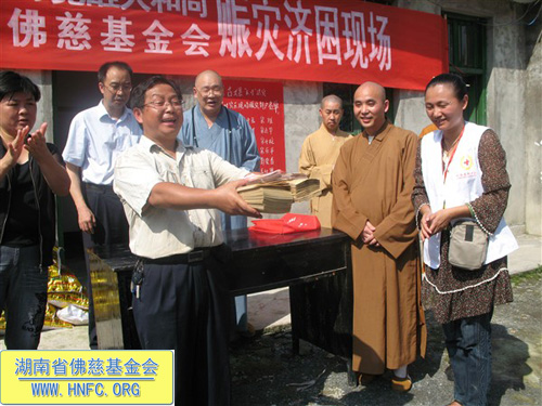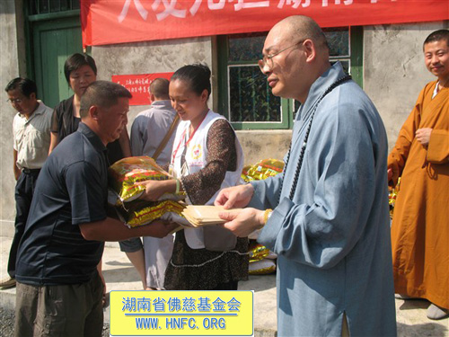2010年7月1日,全国人大代表、中国佛教协会副会长、湖南省佛教协会会长、福建厦门南普陀寺慈善会会长、湖南省佛慈基金会会长圣辉大和尚带领湖南佛学院教务长演法法师、省红十字会志愿者陈旭一行到湘西土家族苗族自治州古丈县资助灾民。