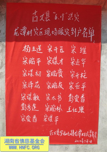 另外圣辉大和尚再次带领同行人员,现场筹集善款八千元,对龙潭村追加20户受灾困难户给予捐赠,使他们能走出当前的困境,相信在这样一片充满着希望和憧憬的土地上,美丽的古丈不会被洪水冲垮。勤劳的古丈人民一定会战胜灾害,早日重建家园,恢复往日的幸福生活。