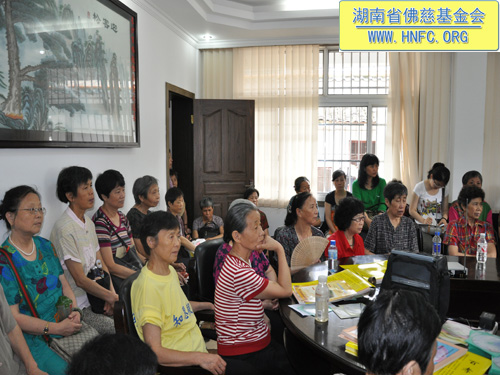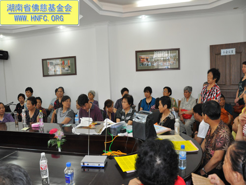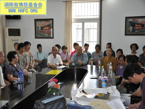 2010年7月9日,湖南省佛慈基金会召开了上半年度工作总结会,省佛慈基金会会长圣辉大和尚和副会长能净大和尚出席了会议并作了重要的开示。省佛慈基金会的组长们都前来参加了会议。