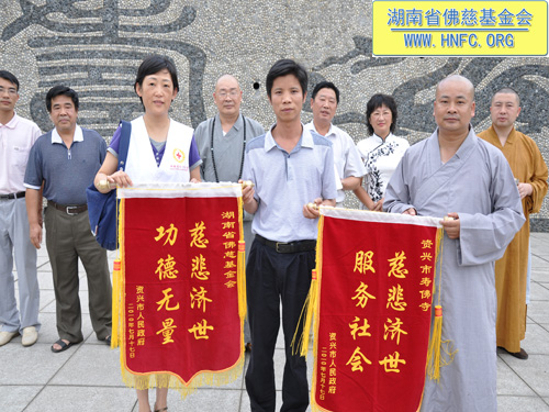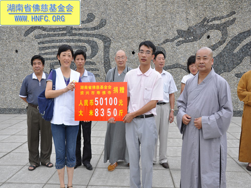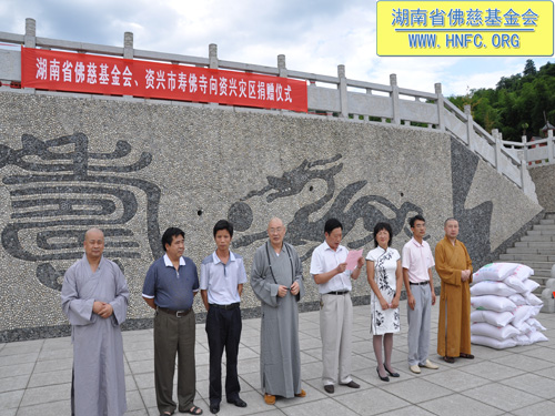 2010年7月17日上午,全国人大代表、中国佛教协会副会长、湖南省佛教协会会长、湖南省佛慈基金会会长圣辉大和尚带领资兴市寿佛寺住持演明法师以及佛慈基金会工作人员前往郴州资兴捐助遭受洪涝灾害的受灾村民。下午3点多顶着烈日到达了捐助现场资兴寿佛寺。
