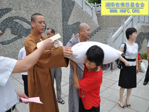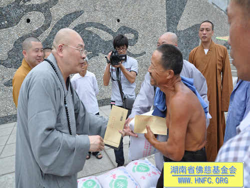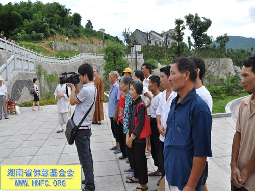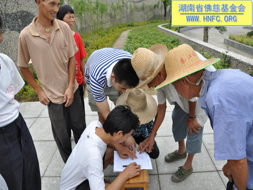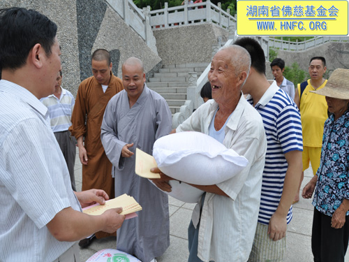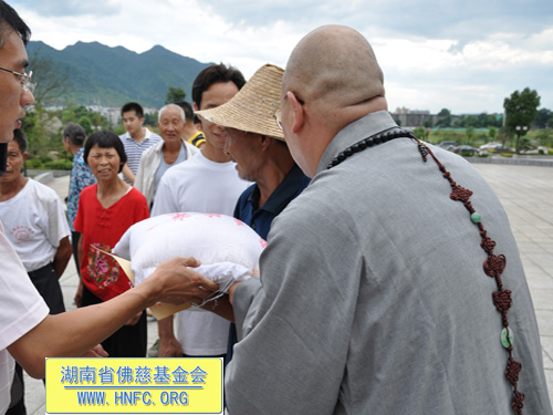 这次捐助是湖南省佛慈基金会和资兴市寿佛寺共同向受灾的167户村民进行资助,每户300元现金,另发50斤大米,共捐善款66800元。当地的老百姓都怀着无比喜悦的心情迎接我们的到来,握住我们的手久久不肯松开,因为我们给他们带去了爱心。