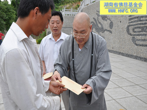 救灾仪式结束后,湖南省佛慈基金会再次资助了郴州市苏仙区坳上镇水潭村特困户唐回民、唐小丫两兄妹每年7000元的学费。希望他们两兄妹在佛慈基金会的帮助下顺利完成学业,学有所成,早日回报社会。