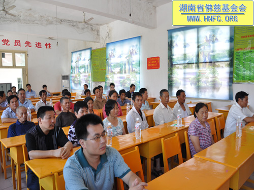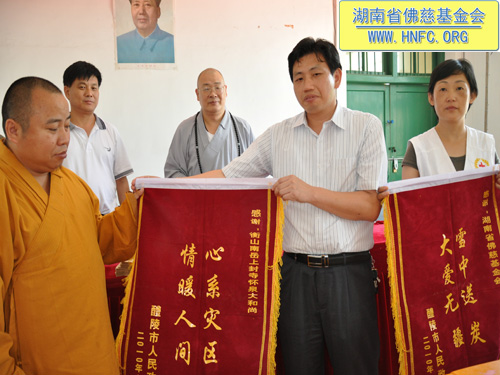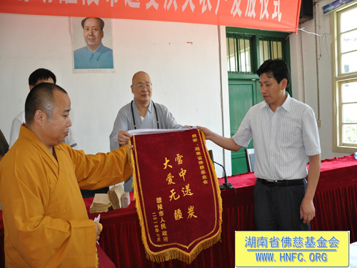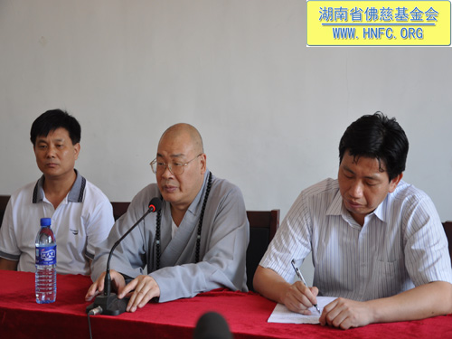 出席捐助仪式的领导有:株洲市民宗局田辉局长、株洲市党组成员工会主席姜季夫、醴陵市统战部罗立新部长、市宗教局局长田佩分、副局长吴远见及石亭镇有关领导出席捐助仪式。捐助仪式结束后,株洲电视台采访了圣辉大和尚。