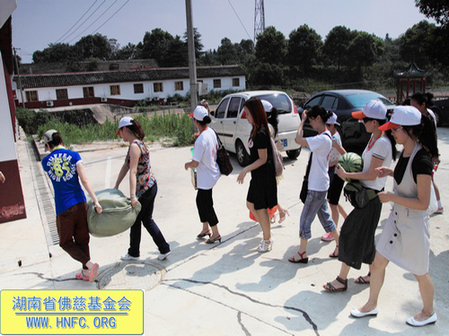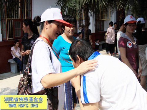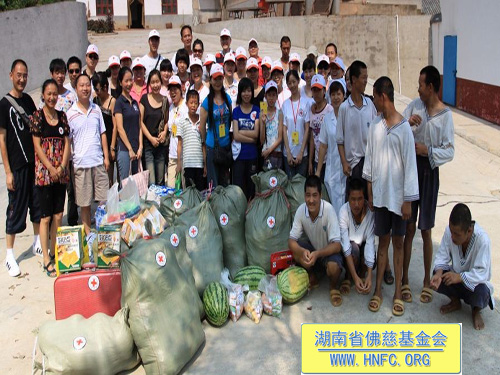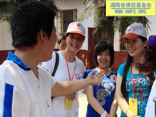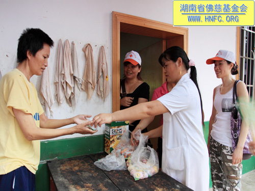 二零一零年七月二十五日上午,我们长沙市红十字会志愿服务队一行30余人,带着湖南省佛慈基金会募集的一批物资和购买的物资,来到了位于梅花镇的市三福利院梅花分院,慰问了医护人员和病友,并了解了该分院的现状。现场又有不少志愿者捐款,很多病友看到多次来的志愿者老朋友激动万分,场面十分感人。以下是活动现场图片: