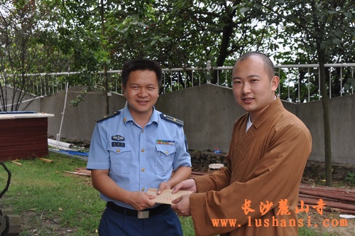 湖南佛教网讯:2010年7月30日,八一建军节即将来临,麓山寺方丈圣辉大和尚委派监院永兴法师、知客印圣法师前往空军岳麓山中心雷达站进行慰问,受到雷达站站长的热情接待。 永兴法师并代表麓山寺方丈圣辉大和尚及麓山寺常住僧众向雷达站全体官兵表示节日的问候。