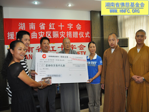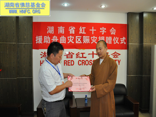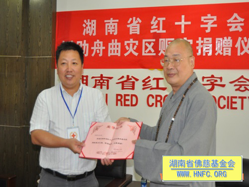 天灾无情,人间有爱,当舟曲遭受泥石流特大灾难时。湖南省佛教协会发扬“血脉相连、同舟共济”的中华民族精神,带着回报社会的一片挚情,向舟曲灾区捐善款,表达对灾区同胞的关爱之情。灾难无情人有情,再一次让我们牵起手来,为舟曲祈福,为生命呐喊。