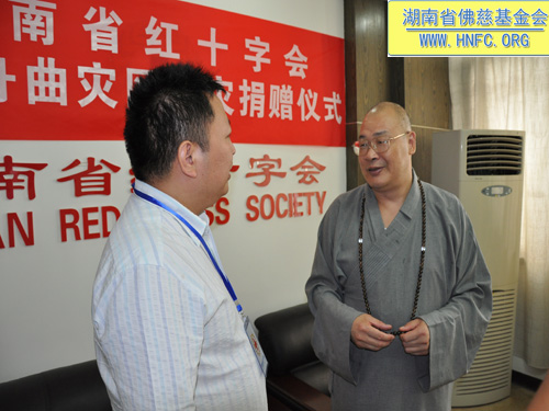 2010年8月16日上午,全国人大代表、中国佛教协会副会长、湖南省佛教协会会长、长沙古麓山寺方丈、湖南省佛慈基金会会长圣辉大和尚率领麓山寺监院永兴法师、省佛协通振法师以及省佛慈基金会工作人员一行,带着筹集的救灾款来到湖南省红十字会,委托省红十字会将这些救灾善款转捐赠给甘肃舟曲遭受泥石流灾害的灾区群众。