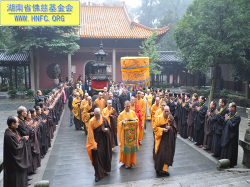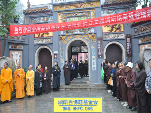2010年10月25日上午,在全国人大代表、中国佛教协会副会长、湖南省佛教协会会长、古岳麓寺方丈圣辉大和尚亲自率领下,麓山寺全体常住僧众以及湖南省佛慈基金会会员和居士修学委员会居士,分别在古麓山寺两旁夹道热烈欢迎全国政协民族和宗教委员会专题调研组来古麓山寺视察。