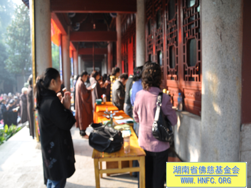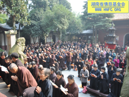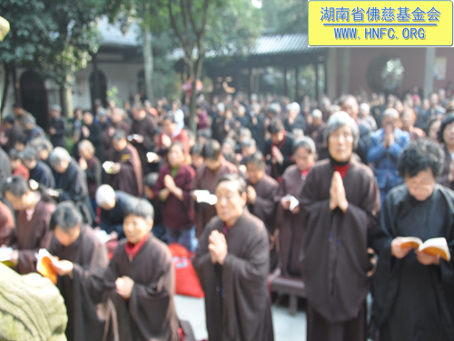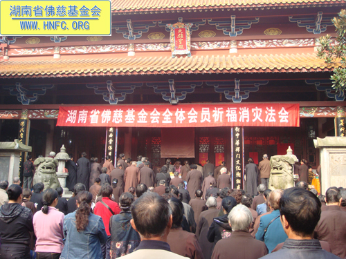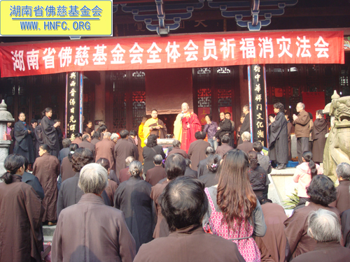 湖南省佛慈基金会于2010年农历九月二十九日在麓山寺为全体会员隆重举行了药师佛圣诞祈福消灾法会。当天早上八点,佛慈基金会的会员们就争先恐后的来到了麓山寺。长沙、湘潭、株洲、宁乡、湘阴、益阳等地区的几百会员踊跃地交纳会费。