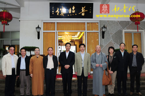 下午1时许,圣辉大和尚、界象法师等陪同张副局长一行参观了南普陀寺天王殿、大雄宝殿等寺院重点建筑。随后,大家在普照楼共享素宴。