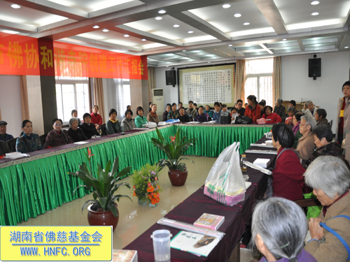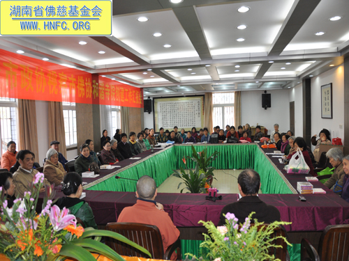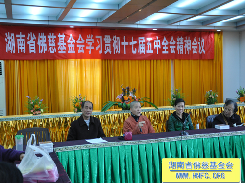 2010年农历十月十八日上午,召开了下半年湖南省佛慈基金会组长会议,认真学习贯彻落实十七届五中全会精神。全体组长积极踊跃参加了会议。湖南省佛慈基金会副会长能净大和尚和周仲山秘书长在会上分别讲了话,强调了四众弟子在修行中要注重于在行动上切实做到,真正修正自己的行为,提高文明素质,大力弘扬中国传统文化,积极推动慈善事业的发展。