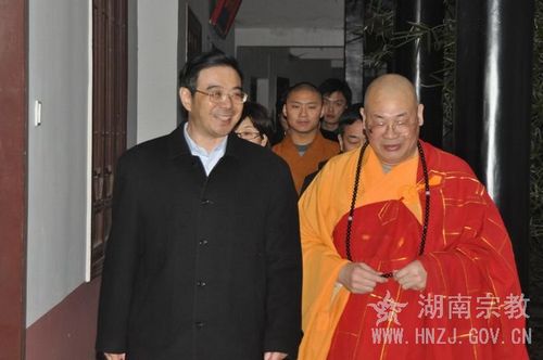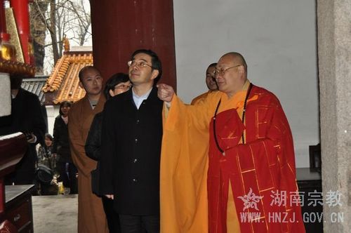 在圣辉法师陪同下,周强同志视察了麓山寺和省佛教学院,听取了圣辉法师的工作汇报。周强同志充分肯定了省佛协和圣辉法师为佛教事业和湖南富民强省所做的贡献,对圣辉法师爱党、爱国、爱教,拥护并贯彻党的宗教工作方针,服务经济社会发展,维护社会和谐所做的大量工作给予了高度评价。