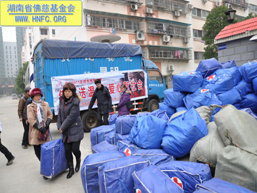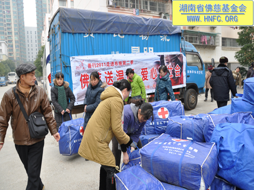 2010年1月13日早上九点,湖南省佛慈基金会的会员们参加了“慈善2011温暖布拖公益行动”的活动,一大早就都来到了活动现场,积极地行动起来,大家齐心合力地把捐赠物资搬运上车,送往火车站托运。