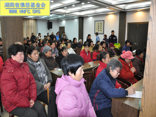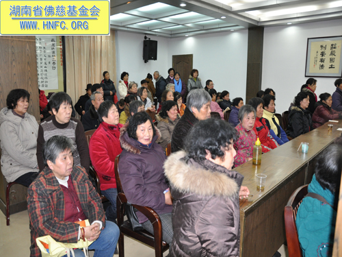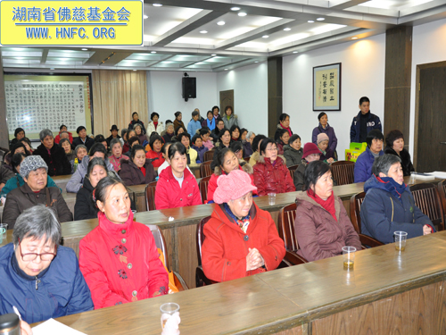 圣辉大和尚做了重要的开示:组长们大家好!瑞雪兆丰年,在这时召开这个会议很有意义,佛慈基金会今年做了很多的实事,得到了上级部门的肯定。十年来,佛慈事业从小做到大,在各位组长们的努力下把慈善事业越做越大。不但立足湖南,也面向全国及世界,不论是马来西亚的海啸,还是海地地震,佛慈都义不容辞的给予资助,哪里有灾难,我们就支援那里,为民所想,为国家分忧。我们慈悲的心量越大,所做的成绩就越大。组长们工作做得很仔细,只奉献不讲回报,境界高。佛慈基金会是真正的做了许多善事,是名副其实的基金会。今后还要继续发扬光大,帮助更多的弱势群体,让社会更加美好和谐。最后祝居士们六时吉祥,身体健康,新年愉快。
