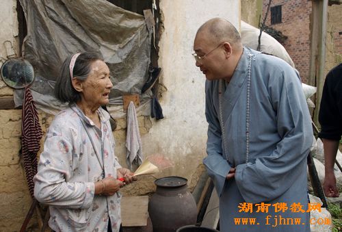 (圣辉大和尚资助的涟源市七星镇89岁的拾荒老人贺奶奶)