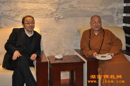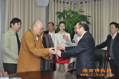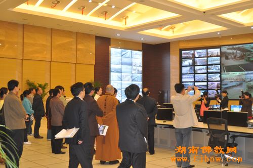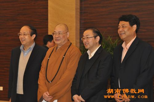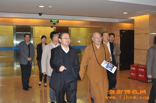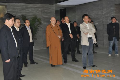 中国佛教协会副会长、湖南省佛教协会会长圣辉大和尚带领省佛协办公室副主任永生法师、通振法师共同出席参观活动。