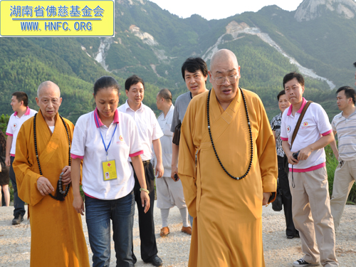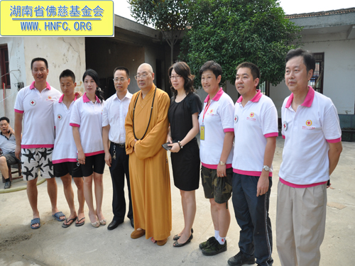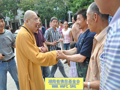 圣辉大和尚此行还亲切接见了,驻扎在灾区一线的湖南省红十字会心理援助中心的志愿者,得知他们将在灾区为受灾群众开展持续两个月的灾后心理干预援助计划后,大和尚亲切的嘱咐他们,工作之余一定要注意休息,为灾区人民多做实事。