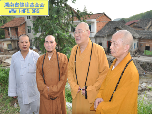 岳阳临湘县长以及统战部部长等领导陪同在受灾现场举行了简单的捐助仪式。