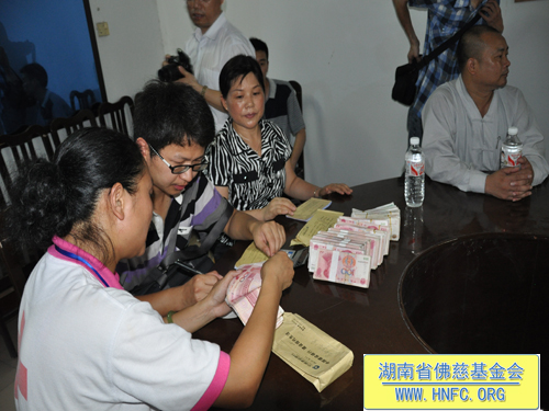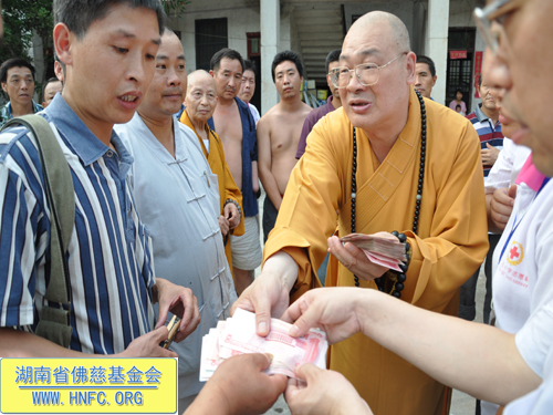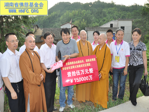 2011年6月22日下午,中国佛教协会副会长、湖南省佛教协会会长、湖南省佛慈基金会会长、湖南省红十字会副会长圣辉大和尚带领郴州市佛教协会会长、南禅寺方丈禅道大和尚、岳阳市佛教协会会长、圣安寺方丈怀梵大和尚、郴州寿佛寺方丈演明大和尚、一行赴岳阳临湘市詹桥镇资助遭受“6.10特大山洪自然灾害”的村民。此次,共资助300多户受灾群众,每户给予350元现金、大米50斤,共计价值15万元的资助。其中包括:郴州市南禅寺资助5万元、岳阳市圣安寺资助5万元、郴州寿佛寺资助5万元。