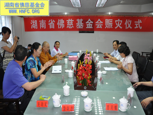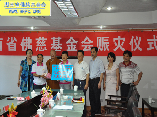 今年6月4日以来,湖南省新化县三次遭受大暴雨和特大暴雨袭击,累计造成53万余人受灾,直接经济损失2.38亿元。湖南省佛慈基金会秉承佛陀慈悲济世、利乐有情之宗旨,来到新化县进行赈灾活动,在新化县城举行了简短的捐助仪式。
