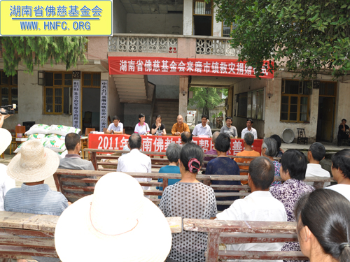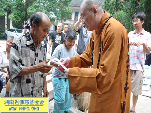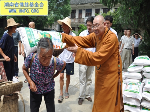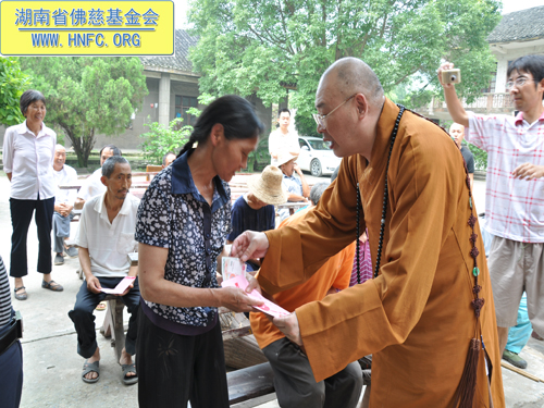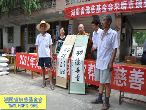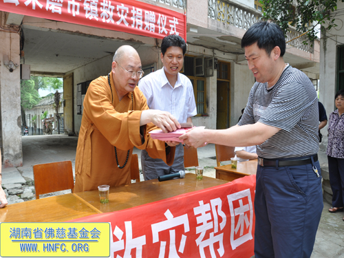 2011年6月27日上午,中国佛教协会副会长、湖南省佛教协会会长、湖南省佛慈基金会会长、湖南省红十字会副会长圣辉大和尚亲自带领的“2011湖南佛教救灾帮困慈善行”,第六站到达了常德石门磨市镇。为石门磨市镇104户受灾群众带去湖南省佛慈基金会及湖南红十字会的祝福和每户给予350元现金、大米50斤,共计价值48360元,其中:湖南祁东万福寺资助5000元、湖南省佛慈基金会资助43360元。