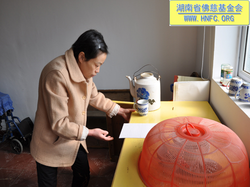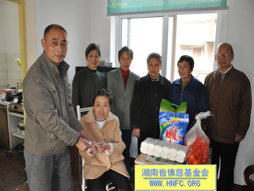 2011年11月22日,湖南省佛慈基金会周仲山秘书长受会长圣辉大和尚的嘱托,前往湘潭市看望身患重病的会员陈菊玲,资助她2000元,补助用于治疗,其他会员也给她带去了生活用品。