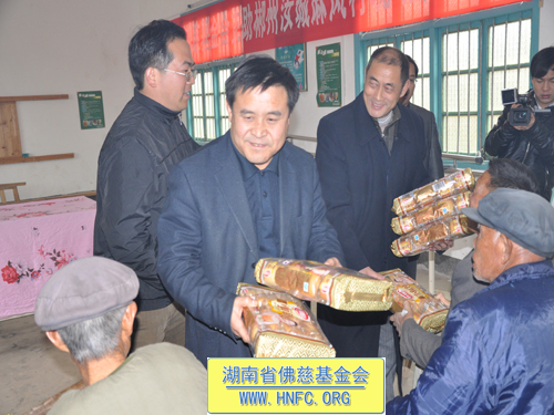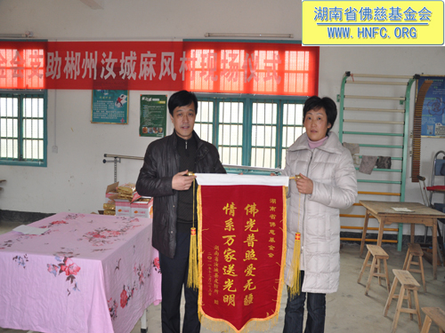 2011年12月23日,湖南省佛慈基金会周仲山秘书长和办公室主任曹银艳受省佛慈基金会会长圣辉大和尚的嘱托,在汝城县政府党组成员副县长刘晓青、县民族宗教局卢新生局长以及县卫生局副局长何华亮陪同下来到汝城县麻风村看望麻风病人,并在现场捐赠善款5万元,补助用于麻风病患者日常所需医药和急需生活用品。同时还给每位患者带去了一袋糕点。