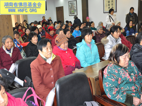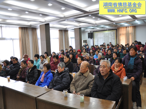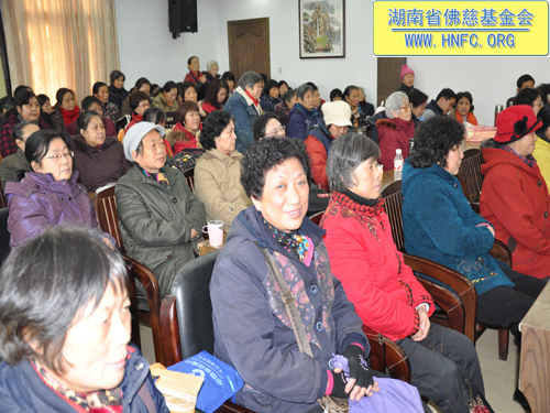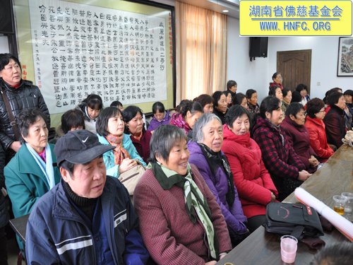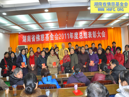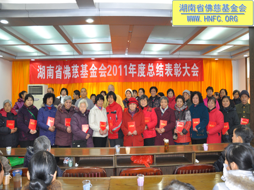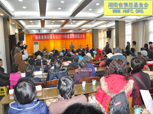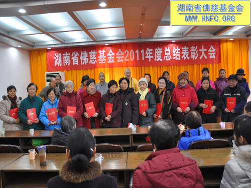 2012年元月4日,是湖南省佛慈基金会召开年终组长表彰工作总结大会的好日子。清晨阳光明媚,佛光普照,龙天护法,今天的天气也被组长们十年如一日的慈悲心所感动不再寒冷。众护法居士组长们陆续来到省佛慈基金会。大家兴高采烈,法喜充满地聚会一堂谈论着一年以来的慈善工作,都表示在来年会做得更好。