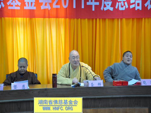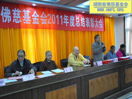 全国人大代表、中国佛教协会副会长、湖南省佛教协会会长、湖南省佛慈基金会会长圣辉大和尚、省佛慈副会长能净法师、省佛慈副会长坚愿法师、省佛慈副秘书长来寒法师出席了此次会议。大会开始由省佛慈基金会周仲山秘书长主持,由省佛慈基金会办公室主任曹银艳宣读湖南省佛慈基金会2011年度工作总结及2012年工作设想。我会今年共捐助的资金已达176.2万元。