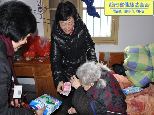 湖南省佛慈联合湘阴县新泉镇春节慰问孤寡老人及特困户