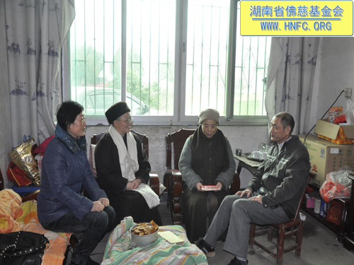 铁炉寺患重病的释碧豪老法师,现年63岁,去年12月初因右上腹疼痛,到湘雅附一院做CT检查,显示为肝内多发性囊肿以及胆囊内多发息肉样病变。目前已手术,花费了上万元医药费用,待其身体状况好转后需再次手术。圣辉大和尚得知情况后,立即嘱咐给予资助,帮助老法师渡过难关。