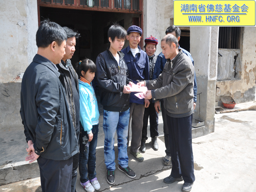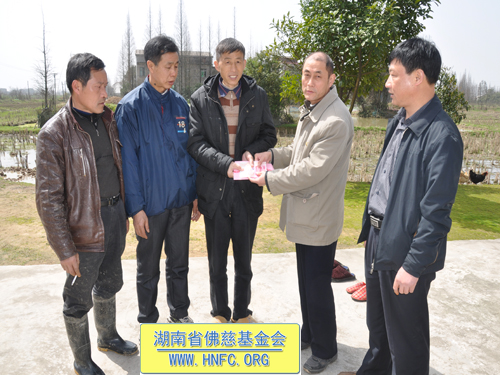 2012年3月24日,湖南省佛慈基金会周仲山秘书长受湖南省佛慈基金会会长圣辉大和尚的嘱托,首先赴湘阴县新泉镇群建村5组资助孤儿兄妹8000元,用于学费及生活补贴。然后又到新泉镇中易村二组,看望慰问患胃癌已做切除术的村民罗军旗,给予他2000元的资助。