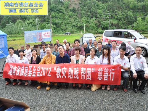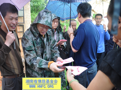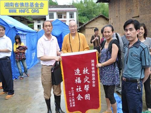 参加当天捐助仪式的有:省宗教局一处唐志兵副处长,省佛慈基金会周仲山秘书长,省佛协办公室副主任通振法师,平江县人民政府李岳玲副县长,县委统战部童向生副部长,县民宗局罗烂辉局长,童市镇党委吴姣姣书记等受灾乡镇负责人。