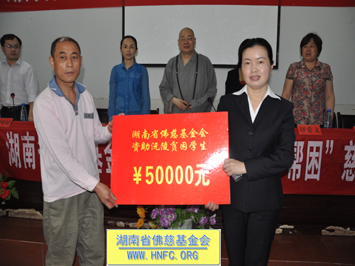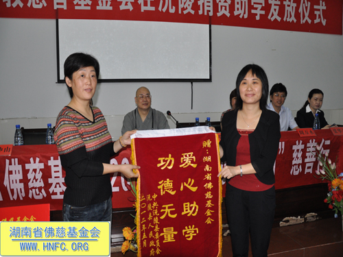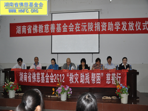 2012年6月2日,全国人大代表、中国佛教协会副会长、湖南省佛教协会会长、湖南省佛慈基金会会长圣辉大和尚带领湖南省佛慈基金会2012救灾助困助学慈善行一行,第十二站到达怀化地区沅陵县,资助沅陵县二中100位贫困学生,其中有苗族、土家族、回族、白族等少数民族贫困学生。