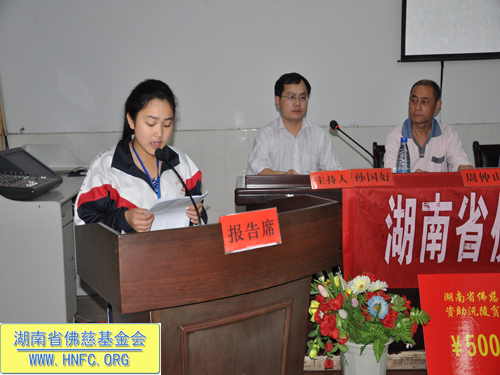 捐赠仪式上,就读于沅陵县二中的贫困生粟念纯同学发言,表示省佛慈的这次爱心助学,温暖了他们的心灵,让他们感受到了人间有真情。同学们会怀着满满的感激,克服困难,努力拼搏,严格自律,以坚定不移的信念,成就梦想,回报社会,并向社会传递和延续关爱。