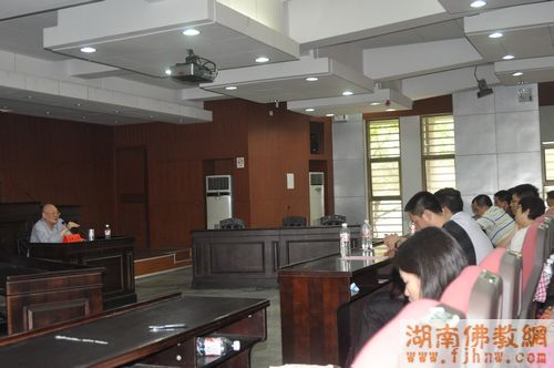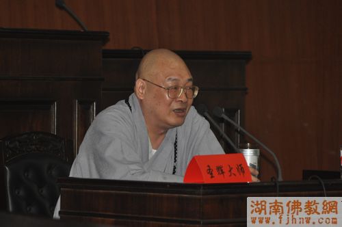 2012年6月30日上午,全国人大代表、中国佛教协会副会长、湖南省佛教协会会长圣辉大和尚应湖南大学邀请,在湖南大学法学院礼堂为长沙市干部自主选学培训班作佛学讲座。圣辉大和尚为学员们细致的讲解了佛教的起源及传播到中国的历史,以及佛教的基本教义,并特别介绍了祖师禅:“明心见性”的修行法门。使大家对佛教有了一个比较全面的认识和了解。