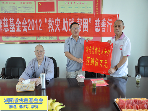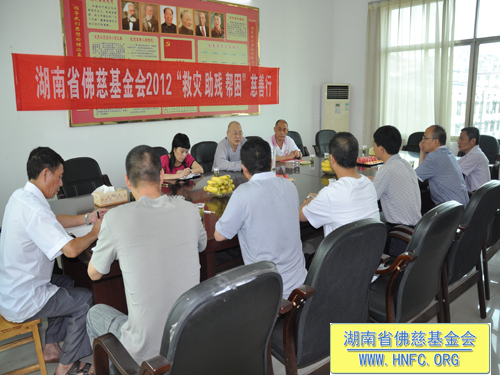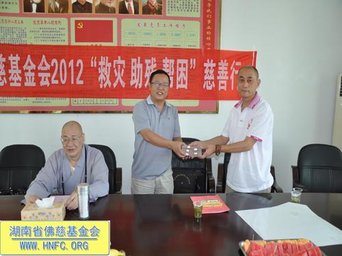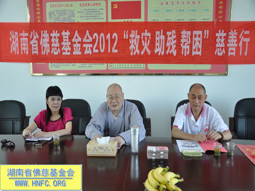 2012年7月11日下午,湖南省佛慈基金会刚举行完每月念佛放生护生法会。全国人大代表、中国佛教协会副会长、湖南省佛教协会会长、湖南省佛慈基金会会长圣辉大和尚马上就带领湖南省佛慈基金会2012救灾助残帮困慈善行一行,赶往第十六站到达郴州资兴市,资助资兴市江背山麻风村。